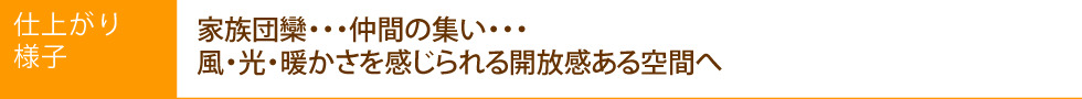 ・ホームパーティーの際 ・テラスリビングとの連結開放団欒の際 ・壁、床、吹抜け、を演出する際 ・・・ その他